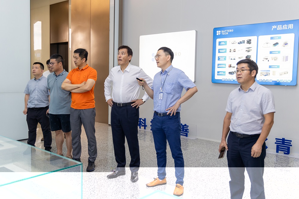 签约仪式结束后,相关领导一同参观了兰钧新能源自动化生产车间,随行工作人员介绍了兰钧新能源自主研发生产的锂离子电池的产品性能、工艺特点和技术难题。