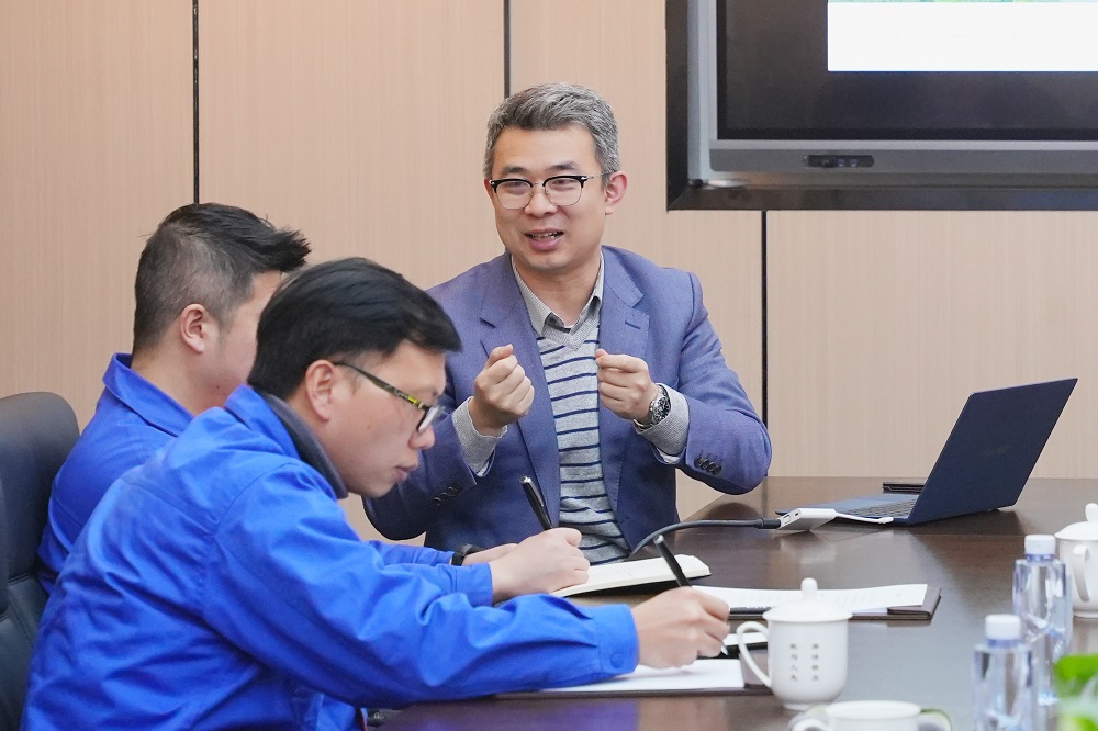 座谈会上,张峰等领导详细介绍了公司目前在新能源技术研发方面的最新进展,项目涵盖新型光伏、储能技术等多个领域,展示了华为在新能源领域的前瞻视野与创新实力。