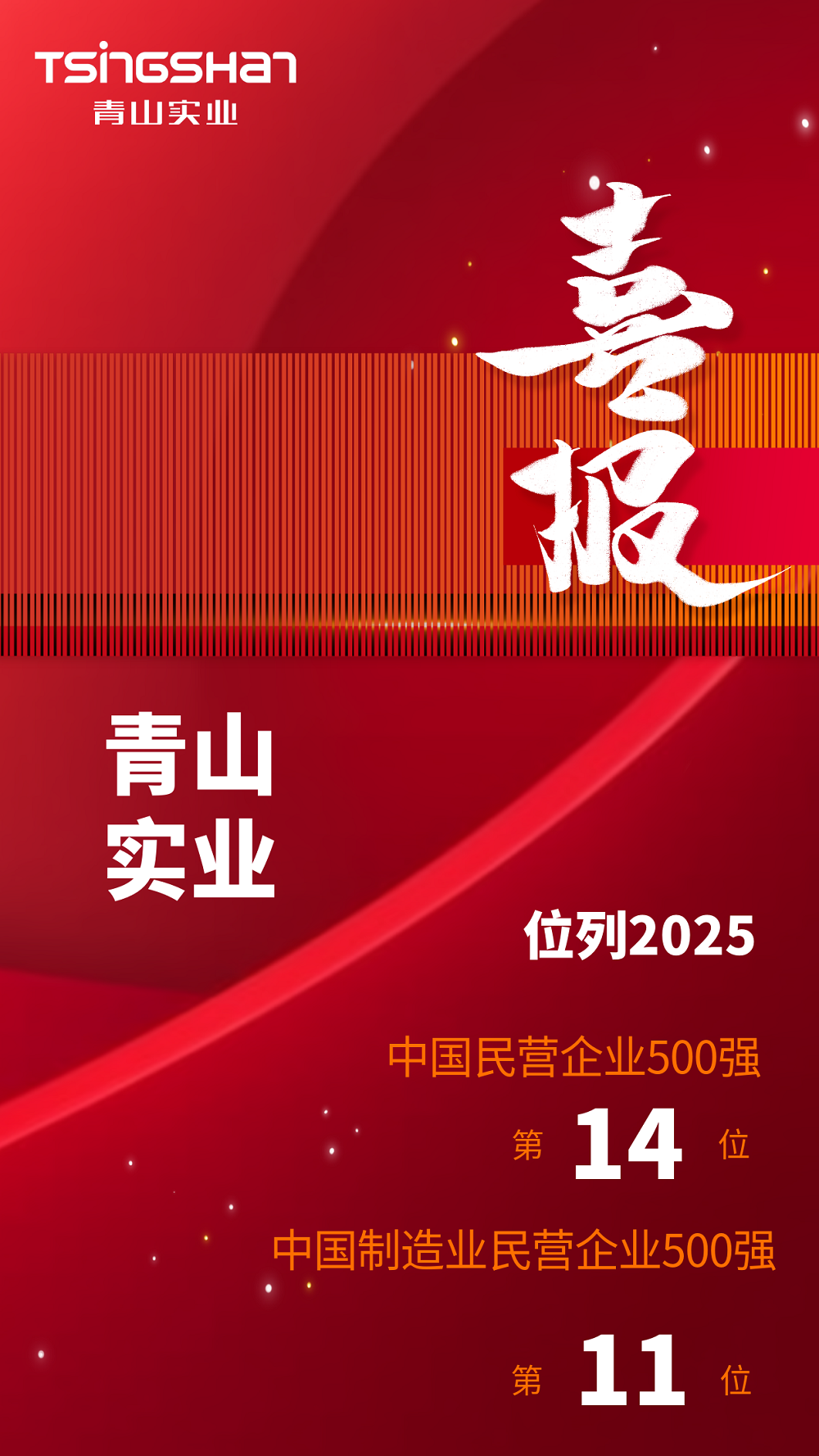 喜报丨壹号娱乐-com实业位列2025中国民营企业500强第14位、中国制造业民营企业500强第11位
