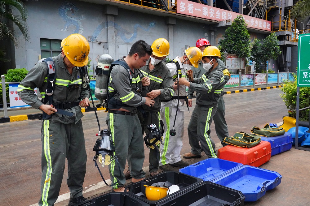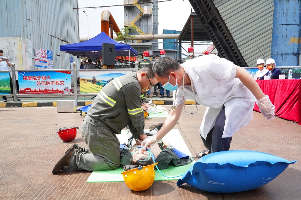 为深入贯彻落实习近平总书记关于安全生产重要论述,认真落实广东省及省国资委“安全生产月”和“安全生产南粤行”活动部署和要求,全面提高员工安全生产意识、生产安全事故应急救援能力和逃生自救能力,6月20日,广东广青金属科技有限公司在炼铁厂开展了2022年煤气泄漏事故应急演练。阳江高新区党委委员、管委会副主任张革,市应急管理局、区安监局、中国平安阳江中心支公司等相关领导出席了此次演练;公司党委书记、董事长王骏,党委委员、常务副总经理刘光勇参加了演练。