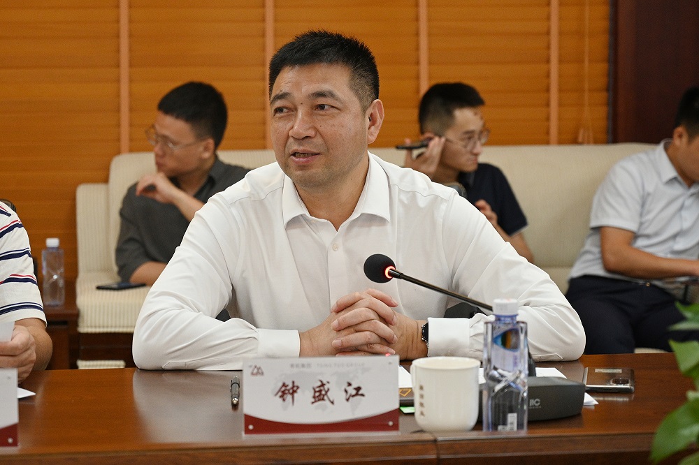 钟盛江就青拓集团高质量发展党建创新、非公党建联盟、企业“五融五促”新模式等方面进行汇报。