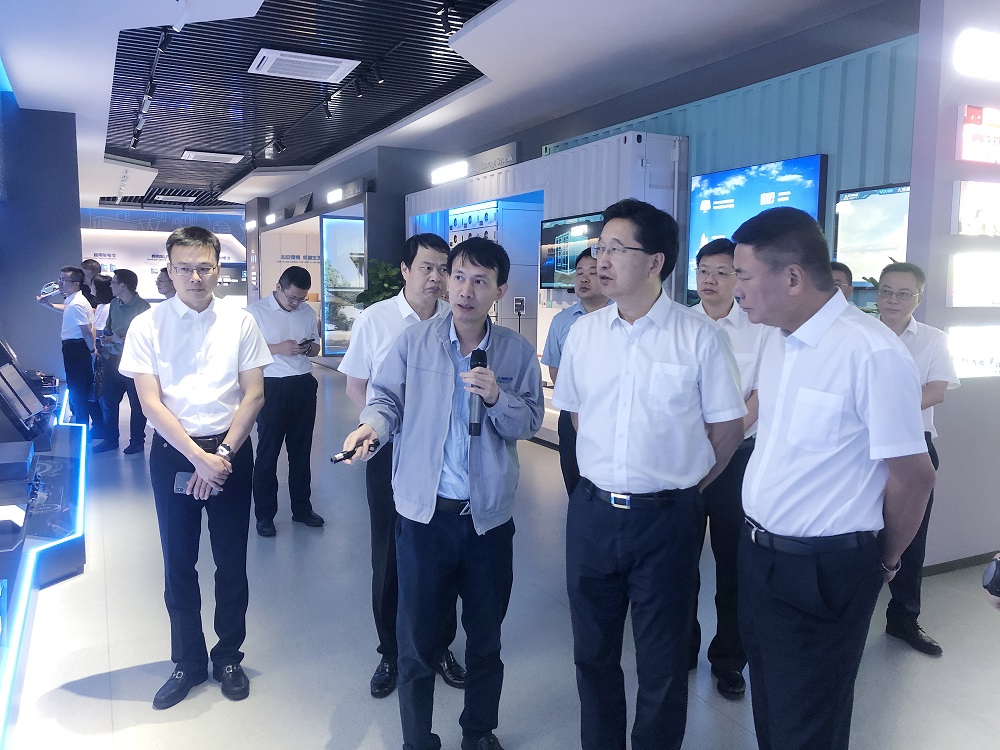 陈金彪一行参观了研发楼展示厅,对瑞浦兰钧能源在产业布局、产品结构、研发创新、数字化建设等方面取得的进展表示充分肯定。他指出:新能源行业是未来一个重要的赛道,希望瑞浦兰钧能源能够在技术创新、产品创新上掌握优势,通过攻关核心技术,突破技术壁垒,实现弯道超车,同时也要注重产品的安全性,助力温州乃至浙江新能源行业高质量发展。