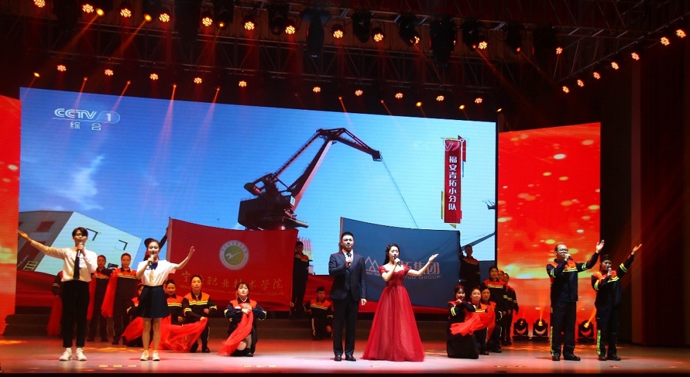 随着颂词响起,来自青拓、宁德职业技术学院的职工和学生们热切的神情与质朴的工服相得益彰,饱含对党的热爱与感激,以激昂的姿态屹立在舞台上。炫彩的灯光将整个舞台映衬得火红,展示了大美中国的和谐富饶,更展示了青拓与宁德职业技术学院蓬勃发展、欣欣向荣的繁荣景象。