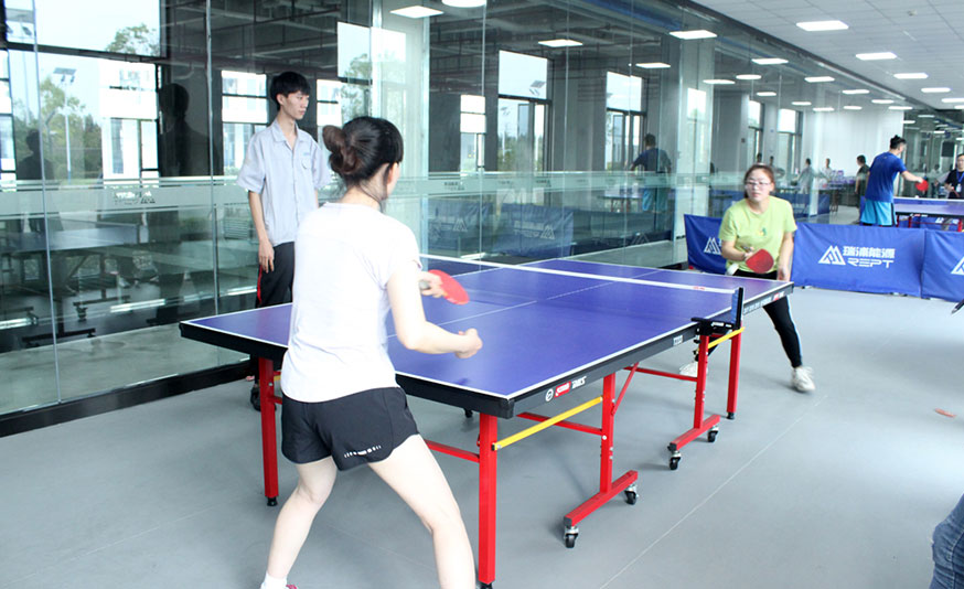 比赛中,只见球桌上精彩不断,直拍、横拍、扣球、旋转球、弧线球等精彩扣杀、绝妙回挡时时呈现。乒乓球在球桌上快速地旋转飞梭,羽毛球赛场外呐喊声和欢呼声此起彼伏,非常热闹,台球桌上选手屏气凝神一杆进洞。