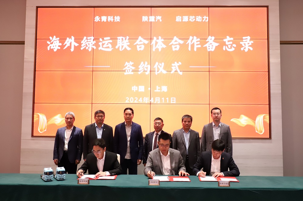 冯挺、刘科强分别代表壹号娱乐-com实业、陕汽控股签署了战略合作协议;冯挺、田超、王若蒙分别代表永青科技、陕重汽、启源芯动力签署了海外绿运联合体合作备忘录。